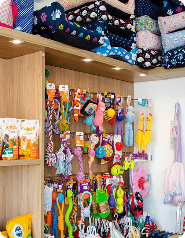 Estamos sempre prontos para atender as necessidades do seu pet – seja através do site, do Whatsapp ou em uma de nossas lojas, onde você encontra uma verdadeira boutique, com diversos brinquedos, roupinhas e utensílios para o conforto do seu Pet, além de rações com desconto.